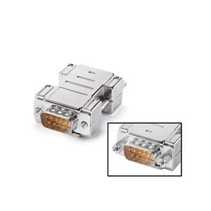 Konverter RS-422, männlich, 9-polig zu RS-232 männlich, 9-polig, verschraubbar mit RS-422-Schnittstelle, Kabelabgang 180 Grad, zum Anschluss von Fremd-SPS, Lieferumfang: 1 Stück Konverter Zubehör für SIMATIC HMI
