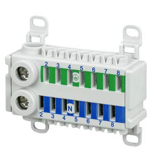 2 x 25 mm2 Schraubklemme, 14 x 6 mm2 Steckklemme, Montage waagrecht od. senkrecht auf Hutschiene