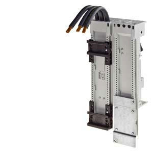 Geräteadapter S2, 80A, WENDEAB AWG4 25 mm2 150mm 150° Länge 260mm, Breite 118mm Geräteadapter SENTRON 8US1 für Sammelschienensysteme zum Aufbau von Schutzgeräten. Die Siemens Sammelschienensysteme 8US bieten vielfältige Möglichkeiten zur Installation von schienenadaptierbaren Anschluss-, Schalt- und Installationsgeräten. Vorteilhaft ist die platzsparende Modulbauweise, sowie die mechanische Befestigung und elektrische Kontaktierung in einem Arbeitsgang. Durch fingersichere Abdeckung der Adapter und Geräteträger ergibt sich eine hohe Betriebssicherheit. Sie besitzen eine weltweite Zulassung und bieten weltweite Einsatzmöglichkeiten im Maschinen- und Anlagenbau. Das Sammelschienensystem 8US1 ist mit unterschiedlichen Schienenmittenabständen verfügbar. SENTRON Sammelschienensysteme - sicher, platzsparend, übersichtlich.