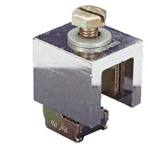 Sammelschienensystem, Zubehör Schienenmittenabstand 40, 60mm Anschlussklemmen mit GEW. -Bolzen M10 für Kabelschuhe bis 240 mm2 Dicke der Schienen: 10mm sowie TT-Profil Anschlussklemme SENTRON 8US1 für Sammelschienensysteme zum Aufbau von Schutzgeräten. Die Siemens Sammelschienensysteme 8US bieten vielfältige Möglichkeiten zur Installation von schienenadaptierbaren Anschluss-, Schalt- und Installationsgeräten. Vorteilhaft ist die platzsparende Modulbauweise, sowie die mechanische Befestigung und elektrische Kontaktierung in einem Arbeitsgang. Durch fingersichere Abdeckung der Adapter und Geräteträger ergibt sich eine hohe Betriebssicherheit. Sie besitzen eine weltweite Zulassung und bieten weltweite Einsatzmöglichkeiten im Maschinen- und Anlagenbau. Das Sammelschienensystem 8US1 ist mit unterschiedlichen Schienenmittenabständen verfügbar. SENTRON Sammelschienensysteme - sicher, platzsparend, übersichtlich.