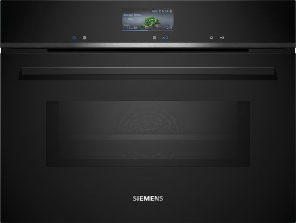 Backofentyp und Heizart Kompaktbackofen mit Mikrowelle mit 20 Beheizungsarten: 4D Heißluft, Ober-/Unterhitze, Umluftgrill, Großflächengrill, Kleinflächengrill, Pizzastufe, coolStart, separate Unterhitze, Sanftgaren, Vorwärmen von Geschirr, Warmhalten, Heißluft Sanft, Ober-/Unterhitze sanft, Air Fry, Mikrowelle, 4D Heißluft + Mikrowelle, Ober-/Unterhitze + Mikrowelle, Großflächengrill + Mikrowelle, Kleinflächengrill + Mikrowelle, Umluftgrillen + Mikrowelle Zusätzliche Heizarten über die Home Connect App: Ruhen lassen, Vorwärmen Max. Power: 900 W; 5 Mikrowellen-Leistungsstufen (90 W,180 W,360 W,600 W, boost) mit Inverter (MW) Intelligente Inverter-Technologie: die Maximal-Leistung wird bei längerem Betrieb bis auf 600 W reguliert Temperaturregelung von 30 °C - 300 °C Garraumvolumen: 45 l Zubehörträger / Auszugssystem: Einschubebenen: 3 1-fach Teleskopauszug, Normalauszug, activeClean fähig Design touchControl-Bedienung Garraum: Email anthrazit Reinigung activeClean® - Pyrolytische Selbstreinigung humidClean (Reinigungshilfe): Leichte Verschmutzungen entfernen mit Wasserdampf und Spülmittel. Komfort Kochassistent TFT-Full-Touchdisplay Plus Elektronik-Uhr Optische Aufheizkontrolle Temperaturvorschlag Ist-Temperaturanzeige Klapptür softMove: Sanftes Öffnen und Schließen der Backofentür. cookControl Pro: In der Gerichte-Funktion stehen mehrere Zubereitungsmöglichkeiten zur Auswahl Schnellaufheizung: Schnell zur Zieltemperatur ohne höheren Energieverbrauch coolStart Heizart: Ohne Vorheizen Tiefkühlgerichte zubereiten Backofenbeleuchtung abschaltbar, LED-Innenbeleuchtung Kühlgebläse Home Connect Zubehör Kombirost 1 x Universalpfanne Umwelt und Sicherheit Sehr geringe Fenstertemperatur 4-fache Türverglasung Kindersicherung mit verriegelbarer Backofentür Sicherheitsabschaltung Restwärmeanzeige Starttaste Türkontaktschalter Technische Info Länge des Anschlusskabels: 150 cm Nennspannung: 220 - 240 V Gesamtanschlusswert Elektro: 3.6 kW Maße Gerätemaße (HxBxT): 455 x 594 x 548mm Nischenmaße (HxBxT): 455 mm x 560 mm x 550 mm „Maße und Einbauhinweise zu diesem Gerät gemäß technischer Zeichnung beachten“ Um die technische und optische Kompatibilität zu gewährleisten, empfehlen wir Ihnen, Komplementär-Produkte innerhalb der Produktserie IQ700 zu wählen, um die bestmögliche Einbausituation Ihrer Einbaugeräte zu gewährleisten.
