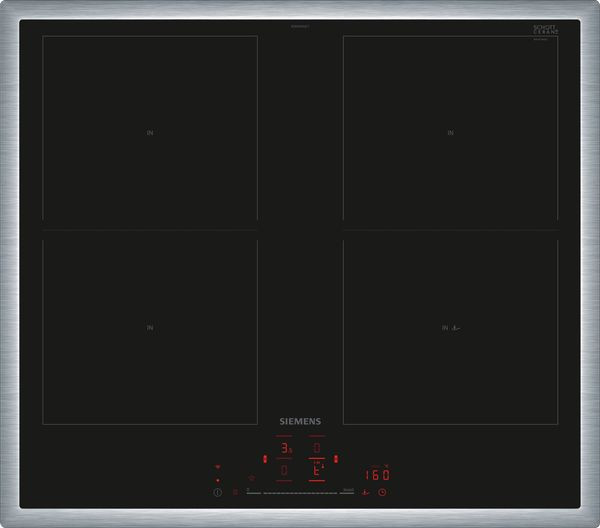 Das autarke Induktionskochfeld ED645HQC1E von Siemens stellt vier Kochzonen mit 17 Leistungsstufen und PowerBoost-Funktion zum Kochen, Braten und Dünsten zur Verfügung. Mit Kombi-Induktion lassen sich ganz einfach per Fingerdruck über die Kombi-Zone zwei Induktionszonen miteinander verbinden, um eine größere Kochfläche zu schaffen. Der Bratsensor Pro sorgt dabei für Kochen ohne Anbrenngefahr. Die touchSlider-Bedienung ermöglicht die Einstellung der Leistungsstufe mit nur einem Finger. Das ED645HQC1E lässt sich zudem smart via Home Connect App steuern und in Kombination mit einer entsprechenden Dunstabzugshaube passt sich diese automatisch dem Kochfeld an. Mit der Favoriten-Taste kann man das Kochfeld ganz individuell nach den eigenen Wünschen einstellen und sogar sein Smart Home steuern. In puncto Sicherheit überzeugt das ED645HQC1E mit einer Restwärmeanzeige, einer Kindersicherung und einer Sicherheits-Zeitabschaltung.