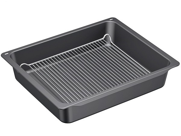 Die extratiefe Pfanne mit Einlegerost ist ideal für die Zubereitung großer Braten oder umfangreicher Grillgerichte. Dank ihres großzügigen Fassungsvermögens von 10 Litern eignet sie sich perfekt für die Zubereitung größerer Mengen. Pfanne und Rost lassen sich gemeinsam komfortabel aus dem Ofen entnehmen, was die Handhabung besonders praktisch macht. Im Lieferumfang ist zudem eine Rezeptbroschüre enthalten. Die Pfanne ist passend für alle Siemens Herde und Backöfen.