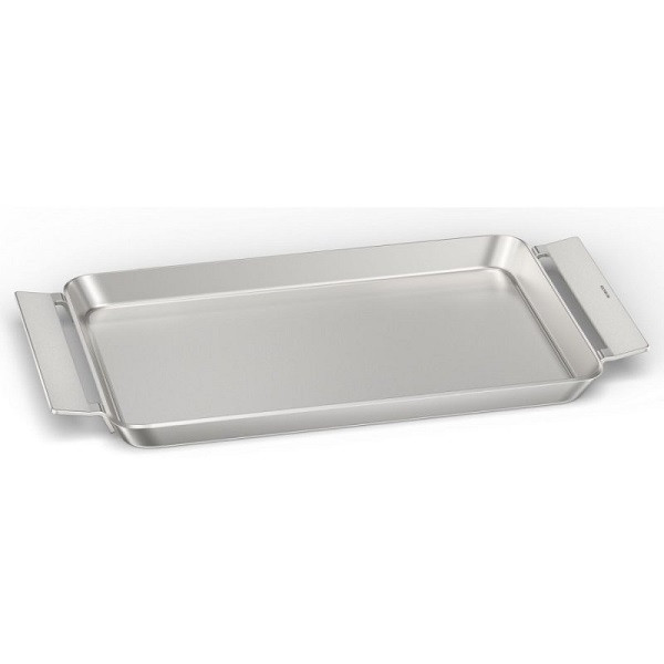 Außenmaße einschließlich Griffe: 46 x 23 cm (Bratfläche: 34 x 20 cm), Material: Mehrschichtmaterial SWISS-PLY mit Aluminiumkern, umgeben von 2 Edelstahlschichten, Induktionsgeeignet, Backofenfest (bis 220 °C)