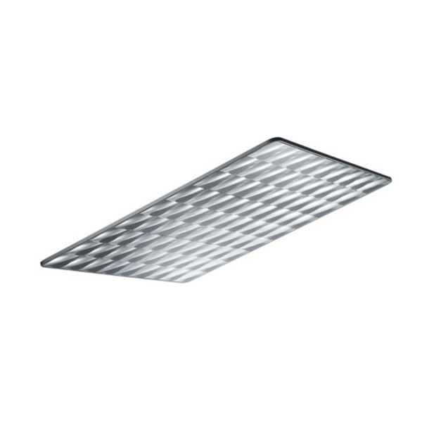 Spiegel-Werfer-Reflektor, für Siteco Mirrortec Indoor, Seilabhänger, Gehäuse, quadratisch, aus Aluminium, lackiert, weißaluminium (RAL 9006), Fresnel Reflektor 100, aus PMMA, Alu bedampft, hochglänzend, Lichtpunkt-Zerlegung, Fresnelstruktur, Länge: 1.200 mm, Breite: 1.200 mm