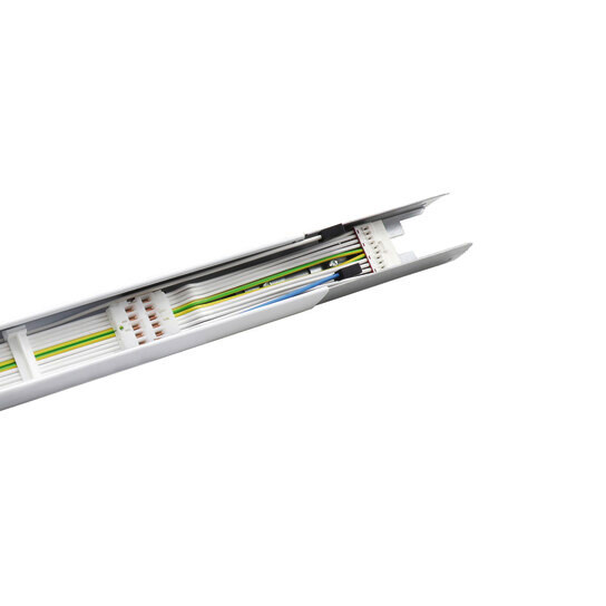 Modario, Tragschiene, aus Stahlblech, lackiert, leuchtenweiß, 10x Systemmaß 299mm 10adrig und 2x Systemmaß 1495mm 2adrig, Länge: 2.990 mm, Breite: 58 mm, Höhe: 43mm, Durchverdrahtung: 12x 2,5mm², mit Klemme, 10+2polig, max. 2,5mm², Schutzart (gesamt): für Schutzart IP20/IP40, Schutzklasse (gesamt): SK I (Schutzerdung), Prüfzeichen: CE, ENEC, VDE, Norm: EN 60598