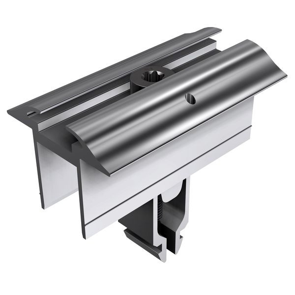 Kurzbeschreibung Mittel- und Endklemmen Vario für 28–45 mm Rahmen, vertikal/horizontal drehbar, vormontiert, 70 mm Klemmlänge, Torx 40, optional Erdungspin.