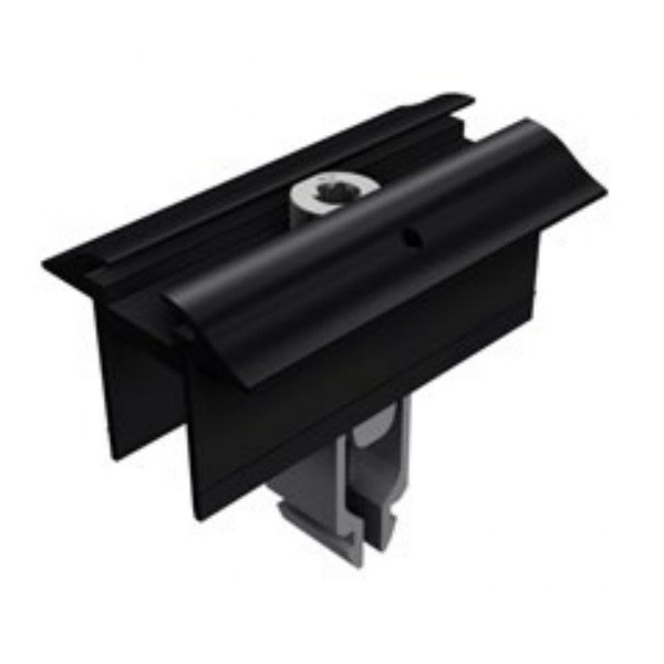 Mittelklemme mit Erdungspin für Rahmenhöhe 28?mm???45?mm, horizontal oder vertikal einsetzbar, komplett vormontiert und kompatibel zu allen SL Rack Systemen, Klemmlänge 70?mm und Klemmtiefe 11?mm für sichere Modulbefestigung, bequem von oben verschraubbar, Material: Aluminium, Schrauben Edelstahl, schwarz eloxiert, Länge 70?mm, Breite 42?mm, Höhe 72?mm