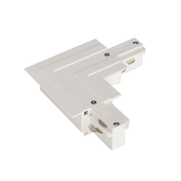 | Kurzbeschreibung | EUTRAC® L-Verbinder, mit Einspeisemöglichkeit, für 3-Phasen Einbauschiene, Erde aussen, verkehrsweiss |