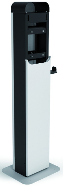 Stele SMA eCharger (einseitig). Robuste Montagestele zur freistehenden, einseitigen Installation eines SMA eCharger (EVC22-3AC-20),inkl. Kabelhalter, Anschlussraum für integrierbare Verteiler, vorbereitet zur Installation einer Außensteckdose,optional Verschraubung mit Erdstück EVC-GD-PDSTL-10.Einseitig belastbar bis ca. 40 kg.