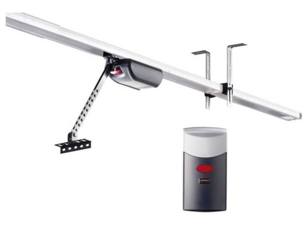 Steuerungsgehäuse mit integriertem Funkempfänger für Wand- oder Deckenmontage (FM 868,8 MHz Somloq Rollingcode, 112 Funkspeicherplätze), integrierter Innentaster, Beleuchtung, Montageset, Handsender separat erhältlich, nur in Verbindung mit den Laufschieneneinheiten #?1890V000, #?1891V000 und #?1892V000 zu verwenden (bitte separat bestellen)