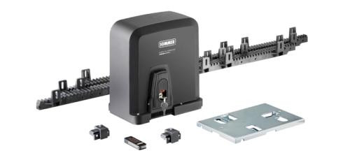 Motorsteuerung mit integriertem Funkempfänger (FM 868,95 MHz SOMloq2, 40 Funkspeicherplätze) universelle Montagebodenplatte (H = 15 mm), 4-Befehl-Handsender Pearl Vibe (#?4019V000) mit fühlbarer Rückmeldung von Funkbefehlen durch Vibration, 4 m Kunststoffzahnstange mit Stahlkern inkl. Befestigungsmaterial (erweiterbar auf max. 6.000 mm) Die Verwendung von aktiven Sicherheitskontaktleisten an den Haupt- und Nebenschließkanten ist vorgeschrieben. Es darf kein Schiebetor zusammen mit dem STArter S2+ ohne aktive Sicherheitskontaktleisten betrieben werden!