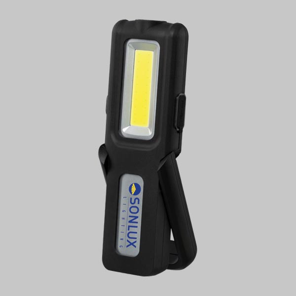 Akku-Handstableuchte. Gehäuse aus gummiertem Kunststoff. Mit Gürtelclip und ausklappbarem Haken. Verstellbarer Bügel mit integriertem Magnethalter. Leuchtdauer ca. 3 Stunden, 6.400 K, Front-LED 350 lm / Ra>96, Top-LED 150 lm / Ra>80. Ladestandsanzeige. Powerbank-Funktion. Fest integrierter Li-Ion-Akku. (2.000 mAh) Inkl. Ladekabel USB-C / USB-A.