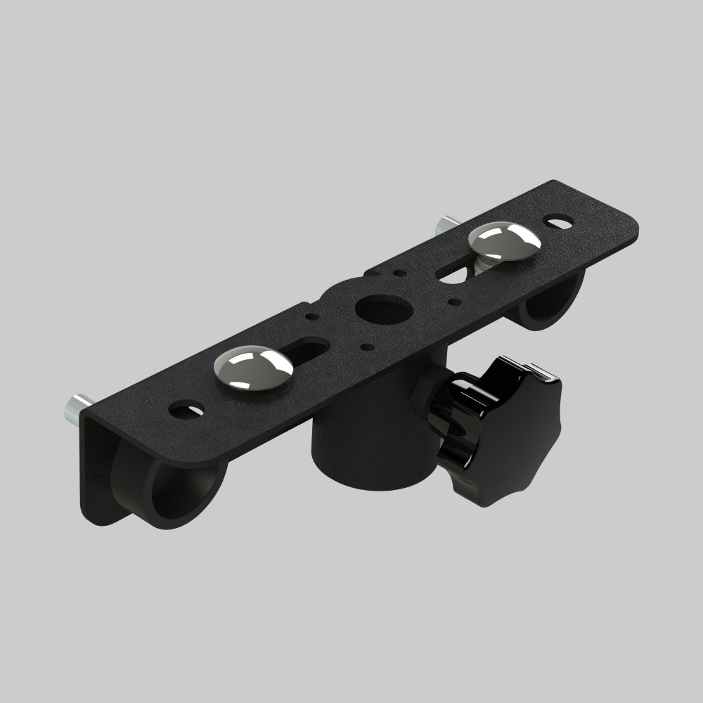 Multi-Adapter für DIN-Zapfen. Für die Anbindung einer GLADIATOR SL oder, in Verbindung mit einer Halteschiene, bis zu drei GLADIATOR SL an einem Stativ mit DIN-Zapfen 30 mm (DIN 14640).