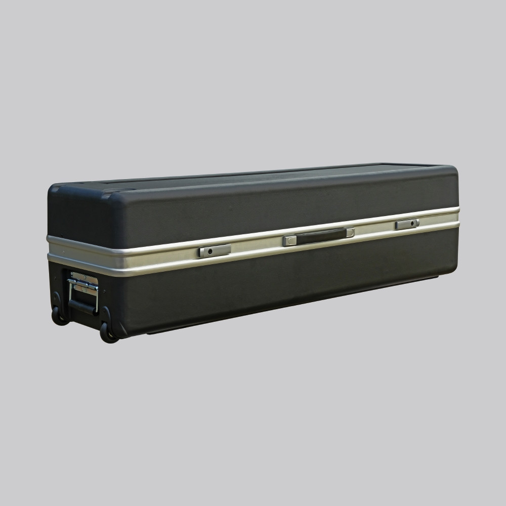 Transportkoffer für Leuchten bis max. 1.100 mm Länge, Kunststoff (ABS), 3 Scharniere, 2 Schlösser (abschließbar), 2 Räder, Tragegriffe, stapelbar, passend für Europaletten, Innenmaße: L 1.130, B 290, H 280 mm