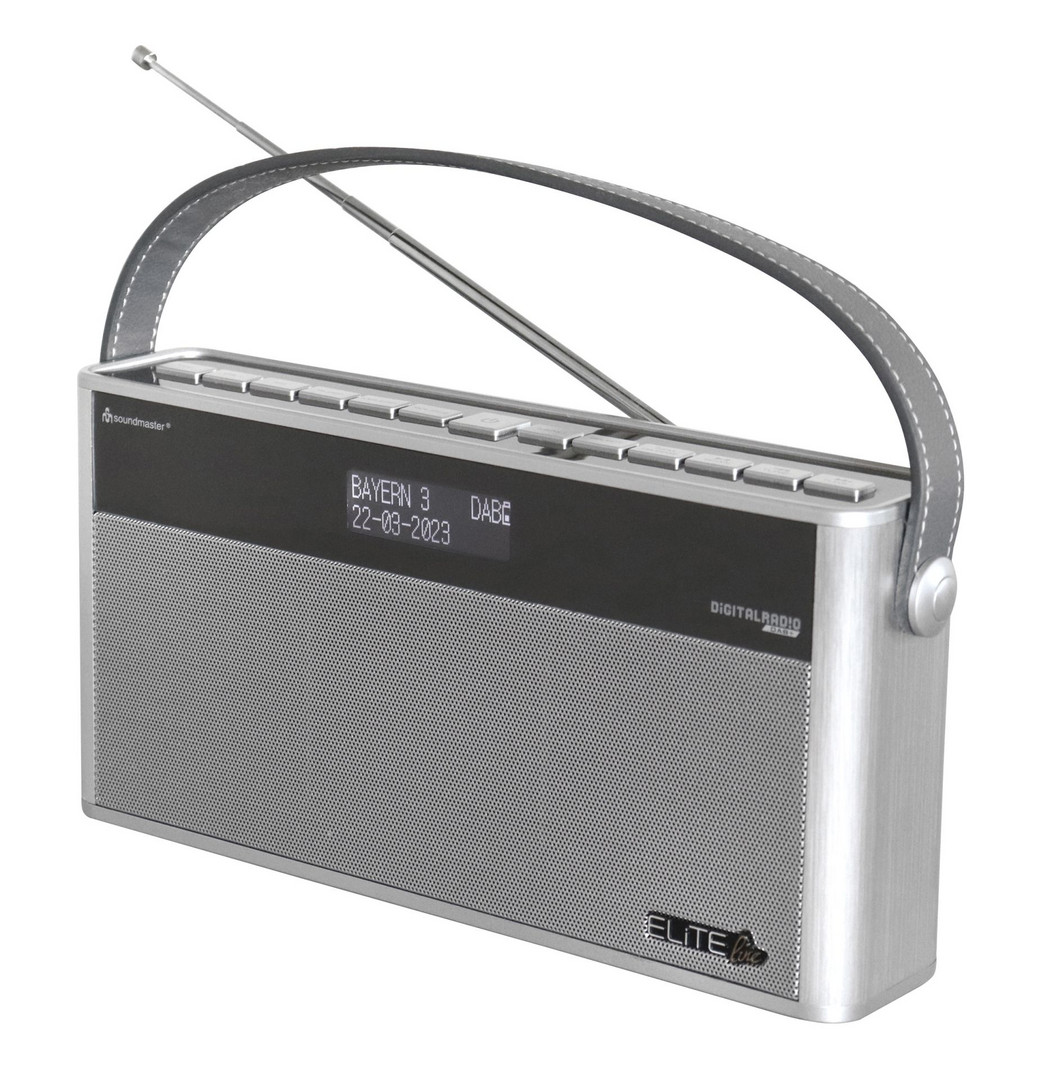 DAB+/UKW-RDS Radio, Bluetooth® Empfangsfunktion, Je 10 Festsenderspeicherplätze, Eingebauter Li-Io Akku 3,7 V/2000 mAh, 3,5 mm Aux In AnschlussPVC-Trageriemen, Bassverbesserung durch Passiv Radiator, Ausgangsleistung 2 x 6 W RMS, AC/DC Netzadapter 9 V/2 A inkl.
