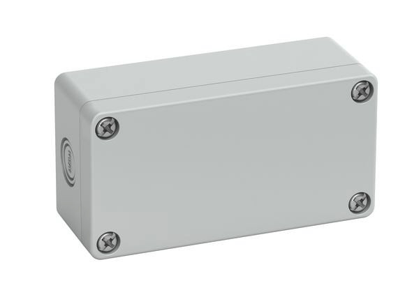 Leergehäuse, mit Schutzart IP66, Polycarbonat, glasfaserverstärkt, zertifiziert durch UL (UL 508 & CSA C22.2 No. 14-13, UL 50 & CSA 22.2 No. 94.1-7 & UL 50E & CSA C22.2 No. 94.2-7), DLG (Ammoniakbeständigkeit), DNV (Klasse: Schiffe & Offshore-Anlagen), Ui=690V AC, Ui=1000V DC, innenliegende Befestigungsstellen, für Installationen im industriellen Umfeld und geschütztem Außenbereich, Kasten: Polycarbonat, glasfaserverstärkt, grau, Deckel: Polycarbonat, grau, Ausschlagmembranen, M12/M16, (1 rückseitig, 2 seitlich)