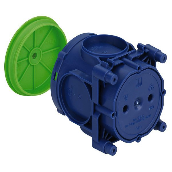 Großrohrdose, Durchmesser 60mm Ø, 4 Schraubdome mit Schraubabstand 60mm, kombinierbar, mit M5 Gewindebuchse (Traglast 10kg) zur Aufnahme eines Deckenhakens, geeignet für alle Schalungsarten und Gegenschalung, mit Schutzart IP30, Bemessungsisolationsspannung: 400V AC, halogenfrei, 2-teilig, Klebebefestigung oder Nagelbefestigung, Membran zur Lochung, Dichtbereich M16-M40, stützholmfähig