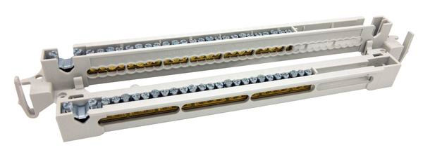 PE/N-Klemmschiene, zum Einbau in AK Kleinverteilern bis Baujahr 2014 und in AKL/AKi-Leergehäusen., PE und N-Klemme mit jeweils 1 Klemmstelle 25mm², 6 Klemmstellen 16mm² und 18 Klemmstellen 6mm²