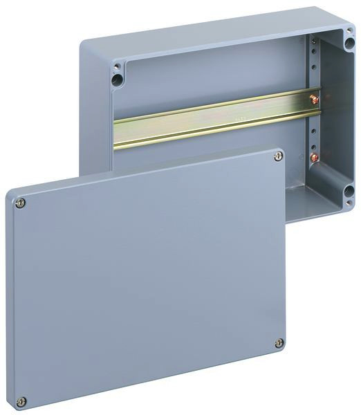 Reihenklemmengehäuse, mit Schutzart IP66, Nennquerschnitt 4mm², Ui=400V AC, Aluminium pulverlackbeschichtet, innenliegende Befestigungsstellen, für Installationen im industriellen Umfeld und geschütztem Außenbereich, ohne Klemmen, mit Tragschiene NS35