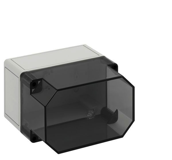 m = metrisch, o = ohne Vorprägung Leergehäuse, mit Schutzart IP66, Polystyrol, Ui=690V AC, Ui=1000V DC, innenliegende Befestigungsstellen, für Standardinstallationen im Innenbereich, Kasten: Polystyrol, grau, Deckel: Polycarbonat, transparent, glatte Seitenwände