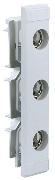 NEOZED(R)-Reiterelemente mit Berührungsschutz, 3-polig, für 60mm Sammelschienen-System, Kupferschienen 12/20/30 x 10mm, NEOZED(R)-Reiterelemente mit Berührungsschutz, Kupferschienen 12/20/30 x 10mm, 3-polig, für 60mm Sammelschienen-System, Baugröße DO2, 63A, E18-Gewinde, Breite 36mm