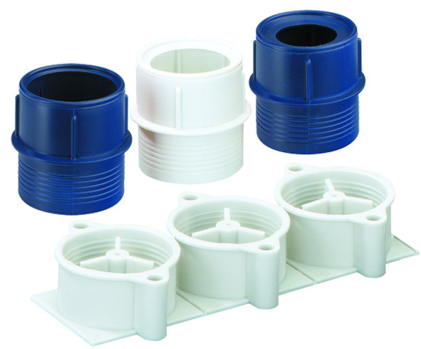 Rohrkapsel, mit Unterteil, zur Aufnahme verschiedener Rohrdurchmesser, Bemessungsisolationsspannung: 400V AC, halogenfrei, Klebebefestigung oder Nagelbefestigung, Dichtbereich M32, stützholmfähig