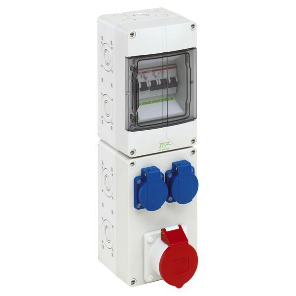 Steckdosenkombination, mit Schutzart IP44, anschlussfertig, nach EN 61439-3, hohe mechanische Belastbarkeit, temperaturunempfindlich, kombinierbar