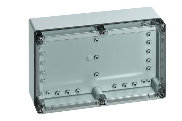 Leergehäuse, mit Schutzart IP66/IP67, ABS, Ui=690V AC, Ui=1000V DC, innenliegende Befestigungsstellen, für Standardinstallationen im Innenbereich, mit Schnellverschluss, Kasten: ABS, grau, Deckel: Polycarbonat, transparent, glatte Seitenwände