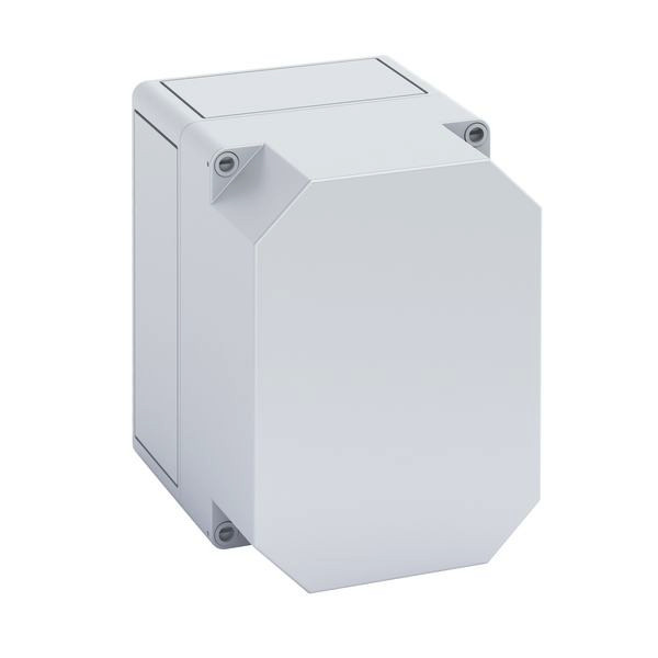 Leergehäuse, mit Schutzart IP66, Polycarbonat, glasfaserverstärkt, zertifiziert durch UL (UL 50 & CSA 22.2 No. 94.1-07, UL 50E & CSA C22.2 No. 94.2-07), DLG (Ammoniakbeständigkeit), DNV (Klasse: Schiffe & Offshore-Anlagen), Ui=690V AC, Ui=1000V DC, innenliegende Befestigungsstellen, für Installationen im industriellen Umfeld und geschütztem Außenbereich, Kasten: Polycarbonat, glasfaserverstärkt, grau, Deckel: Polycarbonat, glasfaserverstärkt, grau, glatte Seitenwände