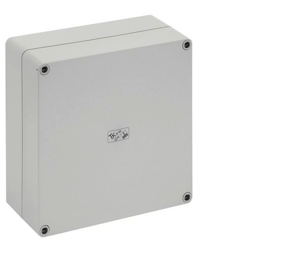Leergehäuse, mit Schutzart IP66, Polycarbonat, glasfaserverstärkt, zertifiziert durch UL (UL 50 & CSA 22.2 No. 94.1-07, UL 50E & CSA C22.2 No. 94.2-07), DLG (Ammoniakbeständigkeit), DNV (Klasse: Schiffe & Offshore-Anlagen), Ui=690V AC, Ui=1000V DC, innenliegende Befestigungsstellen, für Installationen im industriellen Umfeld und geschütztem Außenbereich, Kasten: Polycarbonat, glasfaserverstärkt, grau, Deckel: Polycarbonat, glasfaserverstärkt, grau, glatte Seitenwände