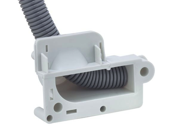 zur einfachen Rohrübergabe im Wand- und Deckenbereich oder zur Weiterführung von Rohren unter dem Estrich mit großem Toleranzausgleich, geeignet für Klebebefestigung und Gegenschalung, Einführungsöffnung für Rohre bis M 25