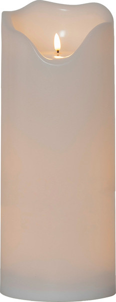 Kerze für den Außenbereich aus der Familie "Flamme". Hergestellt aus Kunststoff. Leuchtet mit einem warmweißem Licht.