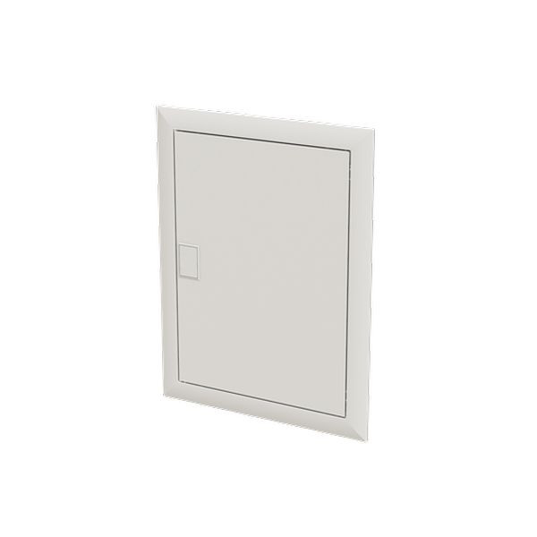 Blendrahmen und Tür passend zu Stromkreisverteiler UK62…, Stahlblech pulverbeschichtet, Farbe: alpinweiß, RAL 9016, der Tip-in-Türverschluss besticht durch sein modernes Design und die einfache Bedienbarkeit, für mehr Sicherheit ist ein Sicherheitsschloss als Zubehör erhältlich, leichtes Abnehmen von Blendrahmen und Tür mit Putzausgleichsmöglichkeit