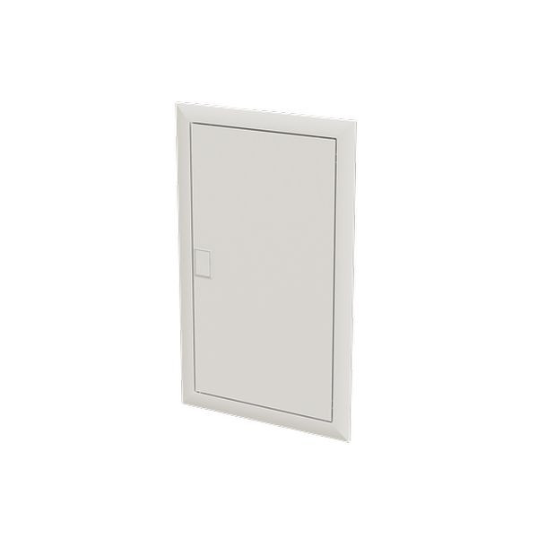 Blendrahmen und Tür passend zu Stromkreisverteiler UK63…, Stahlblech pulverbeschichtet, Farbe: alpinweiß, RAL 9016, der Tip-in-Türverschluss besticht durch sein modernes Design und die einfache Bedienbarkeit, für mehr Sicherheit ist ein Sicherheitsschloss als Zubehör erhältlich, leichtes Abnehmen von Blendrahmen und Tür mit Putzausgleichsmöglichkeit