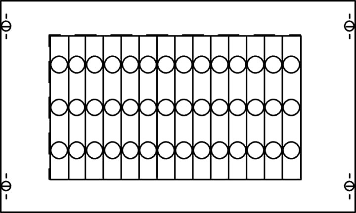 Innenausbausystem, Kombi-Sets, montiert auf EDF-Profil, für Sammelschienensystem mit Betriebsmittel, Rasteinheit 2 RE = 300 mm, Feldbreite 2 = 500 mm, 48 Platzeinheiten, bestückt mit 14 Reitersicherungssockel D02, Betriebsmittel Fabrikat: ABB, ZE60, mit Sammelschienensystem 3-polig, Ausrichtung Sammelschienen: horizontal, mit Sammelschienenhalter ZB5, Sammelschienenmittenabstand: 60 mm, mit 3 Cu-Schienen, Bemessungsstrom In max. 250 A, Abdeckungen aus Kunststoff, 90 Grad Druck-Drehverschluss, RAL 7035, Ausführung der Abdeckung: mit Ausschnitt, einsetzbar ab einer Schranktiefe von 200 mm, Kombi-Sets werden oben oder unten am Verteilerfeld eingesteckt und auf der anderen Seite am Schrank befestigt. Die EDF-Profilschienen und Feldverbinder sind im Lieferumfang enthalten.