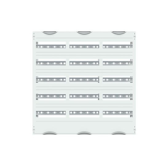Innenausbau Modul, CombiLine, Bausatz unmontiert, für DIN Reiheneinbaugeräte, Rasteinheit 5 RE = 750 mm, Feldbreite 3 = 750 mm, 180 Platzeinheiten, Reihenabstand: 125, Ausbau mit Hutprofilschiene 35 x 15 mm mit Lochung für Drahthalter, Hutschiene ab 3-feldbreit mit zusätzlicher Stabilisierungsschiene, für Einbaugeräte nach DIN 43880, Abdeckungen aus Kunststoff, 90 Grad Druck-Drehverschluss, RAL 7035, Ausführung der Abdeckung: mit Ausschnitt, einsetzbar ab einer Schranktiefe von 120 mm, EDF oder WR Montagegerüst muss separat bestellt werden