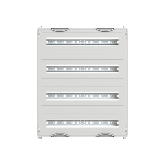 Innenausbau Modul, CombiLine, montiert im Schrank eingebaut, für SMISSLINE TP Geräteeinbau horizontal, Rasteinheit 4 RE = 600 mm, Feldbreite 2 = 500 mm, 96 Platzeinheiten, Reihenabstand: 150, Ausbau mit Hutprofilschiene 35 x 15 mm mit Lochung für Drahthalter, für Stecksockellänge 4 x 22 Platzeinheiten, Abdeckungen aus Kunststoff, 90 Grad Druck-Drehverschluss, RAL 7035, Ausführung der Abdeckung: mit Ausschnitt, einsetzbar ab einer Schranktiefe von 215 mm, EDF oder WR Montagegerüst muss separat bestellt werden