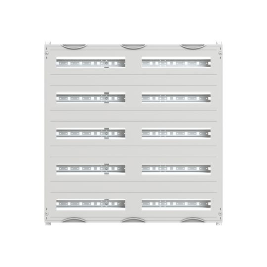 Innenausbau Modul, CombiLine, montiert im Schrank eingebaut, für SMISSLINE TP Geräteeinbau vertikal, Rasteinheit 5 RE = 750 mm, Feldbreite 3 = 750 mm, 180 Platzeinheiten, Reihenabstand: 150, Ausbau mit Hutprofilschiene 35 x 15 mm mit Lochung für Drahthalter, Hutschiene ab 3-feldbreit mit zusätzlicher Stabilisierungsschiene, für Stecksockellänge 5 x 36 Platzeinheiten, Abdeckungen aus Kunststoff, 90 Grad Druck-Drehverschluss, RAL 7035, Ausführung der Abdeckung: mit Ausschnitt, einsetzbar ab einer Schranktiefe von 215 mm, EDF oder WR Montagegerüst muss separat bestellt werden