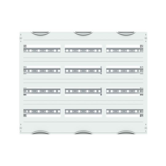 Innenausbau Modul, CombiLine, montiert im Schrank eingebaut, für DIN Reiheneinbaugeräte, Rasteinheit 4 RE = 600 mm, Feldbreite 3 = 750 mm, 144 Platzeinheiten, Reihenabstand: 125, Ausbau mit Hutprofilschiene 35 x 15 mm mit Lochung für Drahthalter, Hutschiene ab 3-feldbreit mit zusätzlicher Stabilisierungsschiene, für Einbaugeräte nach DIN 43880, Abdeckungen aus Kunststoff, 90 Grad Druck-Drehverschluss, RAL 7035, Ausführung der Abdeckung: mit Ausschnitt, einsetzbar ab einer Schranktiefe von 120 mm, EDF oder WR Montagegerüst muss separat bestellt werden