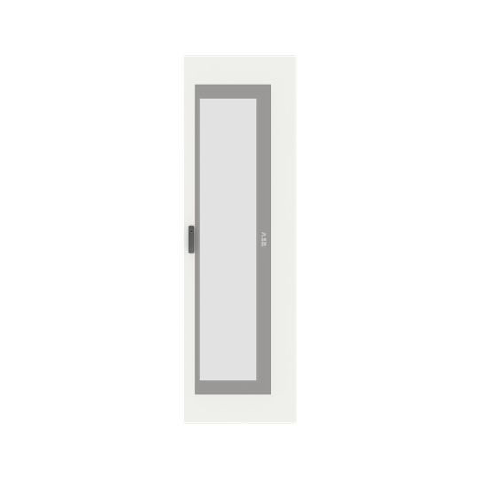 Transparente Tür 5FB/14RE, rechts, für TriLine Schrankserie, Stahlblech 2mm, RAL7035, mit Ausschnitt und Glaselement, lose Lieferung