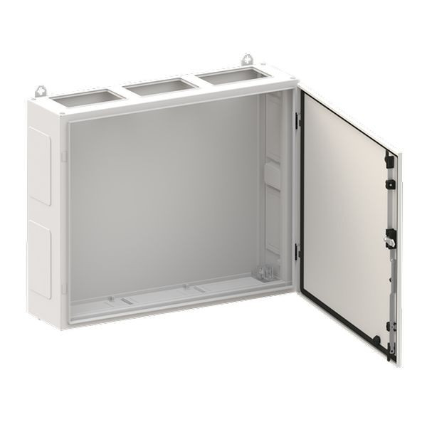 Wandschrank, Baureihe TwinLine, Leerschrank, Montageart: Aufputz, teilversenkt, für den Innenbereich, mit Tür, Schutzklasse II (schutzisoliert), Schutzart IP55, geltende Normen: DIN EN 61439-1, VDE 0660-600-1, DIN EN 61439-2, VDE 0660-600-2, DIN EN 61439-3, VDE 0660-600-3, IK-Code 08, pulverbeschichtet, in RAL 7035, Gehäuse aus Stahlblech, einflüglige Tür, Tür aus Stahlblech, mit Standardverschluss Doppelbart 3 mm, Türöffnungswinkel 180 Grad, Türanschlag rechts oder links, Rückwand aus Stahlblech, Leitungseinführung oben über Flanschöffnung ausgeschnitten, unten über Flanschöffnung vorgeprägt, seitlich über Flanschöffnung vorgeprägt, Abmessungen in mm (H x B x T): 650 x 800 x 225, Rasteinheit 4 RE, Bauhöhe 0, Feldbreite 3, Platzeinheiten 144, vorbereitet für den Ausbau mit Zähler-, Verteilerfelder, Kombi-Sets, CombiLine-Module auf EDF-/WR-Montagegerüst
