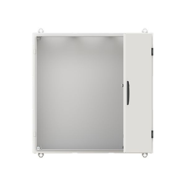 Wandschrank, Baureihe TwinLine, Leerschrank, Montageart: Aufputz, teilversenkt, für den Innenbereich, mit Tür, Schutzklasse II (schutzisoliert), Schutzart IP55, geltende Normen: DIN EN 61439-1, VDE 0660-600-1, DIN EN 61439-2, VDE 0660-600-2, DIN EN 61439-3, VDE 0660-600-3, IK-Code 08, pulverbeschichtet, in RAL 7035, Gehäuse aus Stahlblech, einflüglige Tür, Tür aus Stahlblech, mit Standardverschluss Doppelbart 3 mm, Türöffnungswinkel 180 Grad, Türanschlag rechts oder links, Rückwand aus Stahlblech, Leitungseinführung oben über Flanschöffnung ausgeschnitten, unten über Flanschöffnung vorgeprägt, seitlich über Flanschöffnung vorgeprägt, Abmessungen in mm (H x B x T): 800 x 800 x 225, Rasteinheit 5 RE, Bauhöhe 1, Feldbreite 3, Platzeinheiten 180, vorbereitet für den Ausbau mit Zähler-, Verteilerfelder, Kombi-Sets, CombiLine-Module auf EDF-/WR-Montagegerüst
