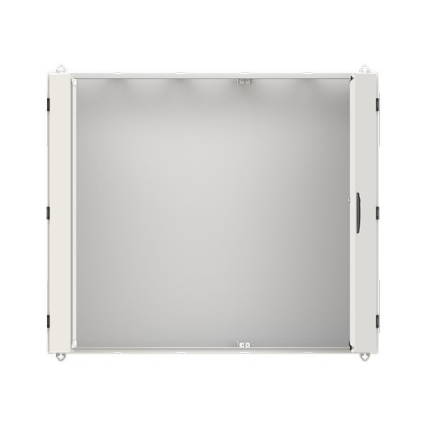 Wandschrank, Baureihe TwinLine, Leerschrank, Montageart: Aufputz, teilversenkt, für den Innenbereich, mit Tür, Schutzklasse I (geerdet), Schutzart IP55, geltende Normen: DIN EN 61439-1, VDE 0660-600-1, DIN EN 61439-2, VDE 0660-600-2, DIN EN 61439-3, VDE 0660-600-3, IK-Code 08, pulverbeschichtet, in RAL 7035, Gehäuse aus Stahlblech, Doppeltür, Tür aus Stahlblech, mit Standardverschluss Doppelbart 3 mm, Türöffnungswinkel 180 Grad, Türanschlag rechts und links, Rückwand aus Stahlblech, Leitungseinführung oben über Flanschöffnung ausgeschnitten, unten über Flanschöffnung vorgeprägt, seitlich über Flanschöffnung vorgeprägt, Abmessungen in mm (H x B x T): 1100 x 1300 x 225, Rasteinheit 7 RE, Bauhöhe 3, Feldbreite 5, Platzeinheiten 420, vorbereitet für den Ausbau mit Zähler-, Verteilerfelder, Kombi-Sets, CombiLine-Module oder Montageplatten auf EDF-/WR-Montagegerüst