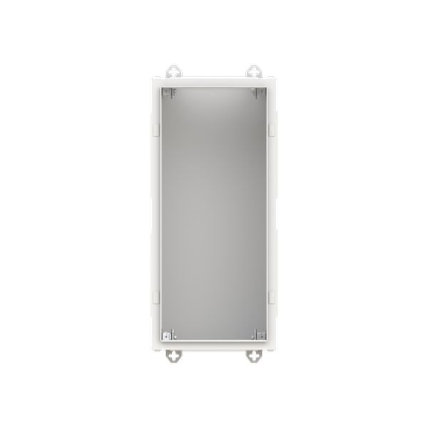 Wandschrank, Baureihe TwinLine, Leerschrank, Montageart: Aufputz, teilversenkt, für den Innenbereich, ohne Tür, Schutzklasse II (schutzisoliert), Schutzart IP30, geltende Normen: DIN EN 61439-1, VDE 0660-600-1, DIN EN 61439-2, VDE 0660-600-2, DIN EN 61439-3, VDE 0660-600-3, IK-Code 08, pulverbeschichtet, in RAL 7035, Gehäuse aus Stahlblech, ohne Tür, Rückwand aus Stahlblech, Leitungseinführung oben über Flanschöffnung ausgeschnitten, unten über Flanschöffnung vorgeprägt, seitlich über Flanschöffnung vorgeprägt, Abmessungen in mm (H x B x T): 650 x 300 x 275, Rasteinheit 4 RE, Bauhöhe 0, Feldbreite 1, Platzeinheiten 48, vorbereitet für den Ausbau mit Zähler-, Verteilerfelder, Kombi-Sets, CombiLine-Module auf EDF-/WR-Montagegerüst