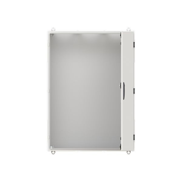 Wandschrank, Baureihe TwinLine, Leerschrank, Montageart: Aufputz, teilversenkt, für den Innenbereich, mit Tür, Schutzklasse I (geerdet), Schutzart IP55, geltende Normen: DIN EN 61439-1, VDE 0660-600-1, DIN EN 61439-2, VDE 0660-600-2, DIN EN 61439-3, VDE 0660-600-3, IK-Code 08, pulverbeschichtet, in RAL 7035, Gehäuse aus Stahlblech, einflüglige Tür, Tür aus Stahlblech, mit Standardverschluss Doppelbart 3 mm, Türöffnungswinkel 180 Grad, Türanschlag rechts oder links, Rückwand aus Stahlblech, Leitungseinführung oben über Flanschöffnung ausgeschnitten, unten über Flanschöffnung vorgeprägt, seitlich über Flanschöffnung vorgeprägt, Abmessungen in mm (H x B x T): 1100 x 800 x 275, Rasteinheit 7 RE, Bauhöhe 3, Feldbreite 3, Platzeinheiten 252, vorbereitet für den Ausbau mit Zähler-, Verteilerfelder, Kombi-Sets, CombiLine-Module oder Montageplatten auf EDF-/WR-Montagegerüst