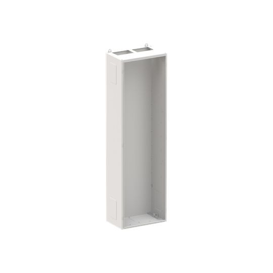 Standschrank, Baureihe TwinLine, Leergehäuse, Montageart: Aufputz, teilversenkt, für den Innenbereich, ohne Tür, Schutzklasse I (geerdet), Schutzart IP30, geltende Normen: DIN EN 61439-1, VDE 0660-600-1, DIN EN 61439-2, VDE 0660-600-2, DIN EN 61439-3, VDE 0660-600-3, IK-Code 08, pulverbeschichtet, in RAL 7035, Gehäuse aus Stahlblech, ohne Tür, Rückwand aus Stahlblech, Leitungseinführung oben über Flanschöffnung ausgeschnitten, unten über Flanschöffnung vorgeprägt, seitlich über Flanschöffnung vorgeprägt, Abmessungen in mm (H x B x T): 1850 x 550 x 350, Rasteinheit 12 RE, Bauhöhe 8, Feldbreite 2, Platzeinheiten 288, vorbereitet für den Ausbau mit Zähler-, Verteilerfelder, Kombi-Sets, CombiLine-Module oder Montageplatten auf EDF-/WR-Montagegerüst