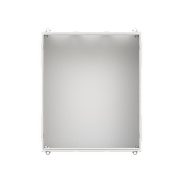 Wandschrank, Baureihe TwinLine, Leerschrank, Montageart: Aufputz, teilversenkt, für den Innenbereich, ohne Tür, Schutzklasse I (geerdet), Schutzart IP30, geltende Normen: DIN EN 61439-1, VDE 0660-600-1, DIN EN 61439-2, VDE 0660-600-2, DIN EN 61439-3, VDE 0660-600-3, IK-Code 08, pulverbeschichtet, in RAL 7035, Gehäuse aus Stahlblech, ohne Tür, Rückwand aus Stahlblech, Leitungseinführung oben über Flanschöffnung ausgeschnitten, unten über Flanschöffnung vorgeprägt, seitlich über Flanschöffnung vorgeprägt, Abmessungen in mm (H x B x T): 950 x 800 x 350, Rasteinheit 6 RE, Bauhöhe 2, Feldbreite 3, Platzeinheiten 216, vorbereitet für den Ausbau mit Zähler-, Verteilerfelder, Kombi-Sets, CombiLine-Module oder Montageplatten auf EDF-/WR-Montagegerüst