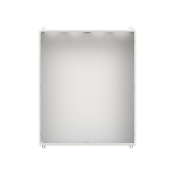 Wandschrank, Baureihe TwinLine, Leerschrank, Montageart: Aufputz, teilversenkt, für den Innenbereich, ohne Tür, Schutzklasse II (schutzisoliert), Schutzart IP30, geltende Normen: DIN EN 61439-1, VDE 0660-600-1, DIN EN 61439-2, VDE 0660-600-2, DIN EN 61439-3, VDE 0660-600-3, IK-Code 08, pulverbeschichtet, in RAL 7035, Gehäuse aus Stahlblech, ohne Tür, Rückwand aus Stahlblech, Leitungseinführung oben über Flanschöffnung ausgeschnitten, unten über Flanschöffnung vorgeprägt, seitlich über Flanschöffnung vorgeprägt, Abmessungen in mm (H x B x T): 1250 x 1050 x 350, Rasteinheit 8 RE, Bauhöhe 4, Feldbreite 4, Platzeinheiten 384, vorbereitet für den Ausbau mit Zähler-, Verteilerfelder, Kombi-Sets, CombiLine-Module auf EDF-/WR-Montagegerüst