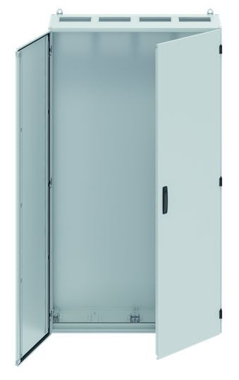 Anreihschrank, Baureihe TwinLine, Leerschrank, Montageart: Aufputz, teilversenkt, für den Innenbereich, mit Tür, Schutzklasse II (schutzisoliert), Schutzart IP55, geltende Normen: DIN EN 61439-1, VDE 0660-600-1, DIN EN 61439-2, VDE 0660-600-2, DIN EN 61439-3, VDE 0660-600-3, IK-Code 08, pulverbeschichtet, in RAL 7035, Gehäuse aus Stahlblech, zweiflügelige Tür, Tür aus Stahlblech, mit Standardverschluss Doppelbart 3 mm, Türöffnungswinkel 180 Grad, Rückwand aus Stahlblech, Leitungseinführung oben über Flanschöffnung ausgeschnitten, unten über Flanschöffnung vorgeprägt, seitlich offen für Anreihbarkeit ohne störende Stege, Abmessungen in mm (H x B x T): 1850 x 1050 x 400, Rasteinheit 12 RE, Bauhöhe 8, Feldbreite 4, Platzeinheiten 576, vorbereitet für den Ausbau mit CombiLine-Modulen auf WR-Montagegerüst oder Montageplatte